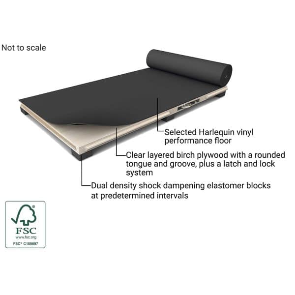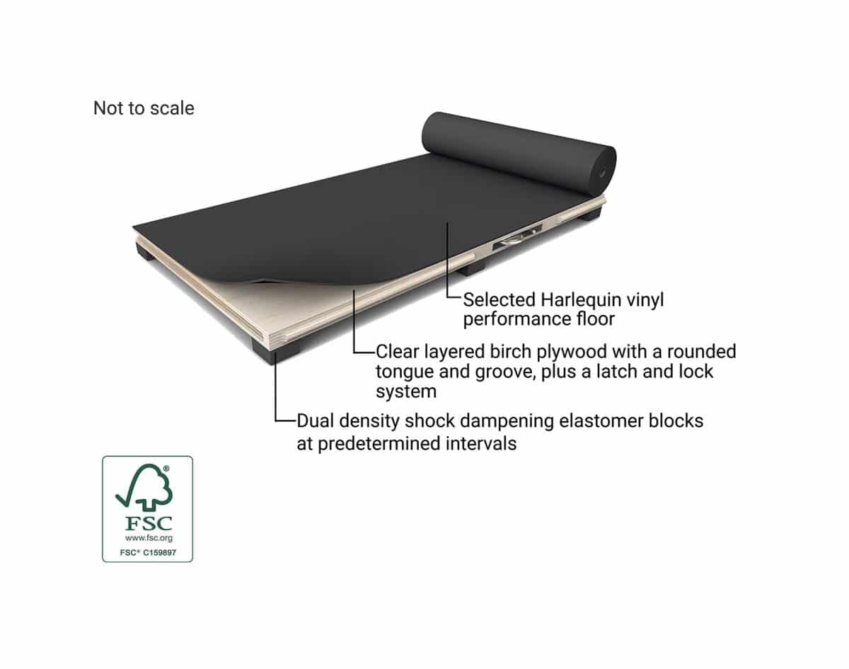 Performance surface: Harlequin Liberty can be used with a variety of performance surface options from the Harlequin range of vinyls and solid or engineered wood finishes. Edge trims and ramps are available if required. For easy storage and transportation please see Harlequin’s panel cart.