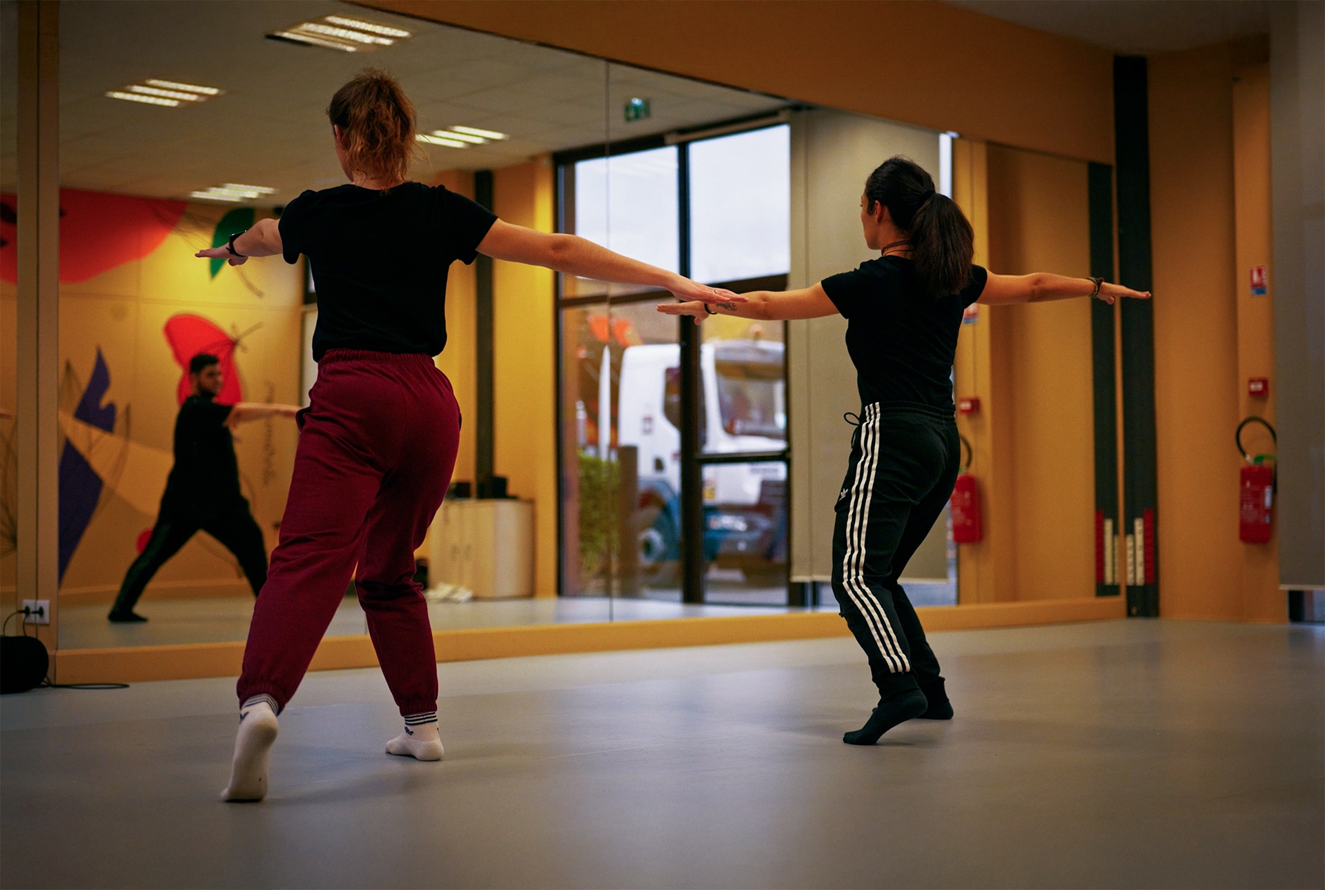 Dans une école de spectacle vivant, le sol est un élément structurant. Il influence la sécurité, la performance et la longévité des artistes. Le studio est équipé du plancher amortissant Harlequin Activity, recouvert du revêtement de danse vinyle Harlequin Standfast.