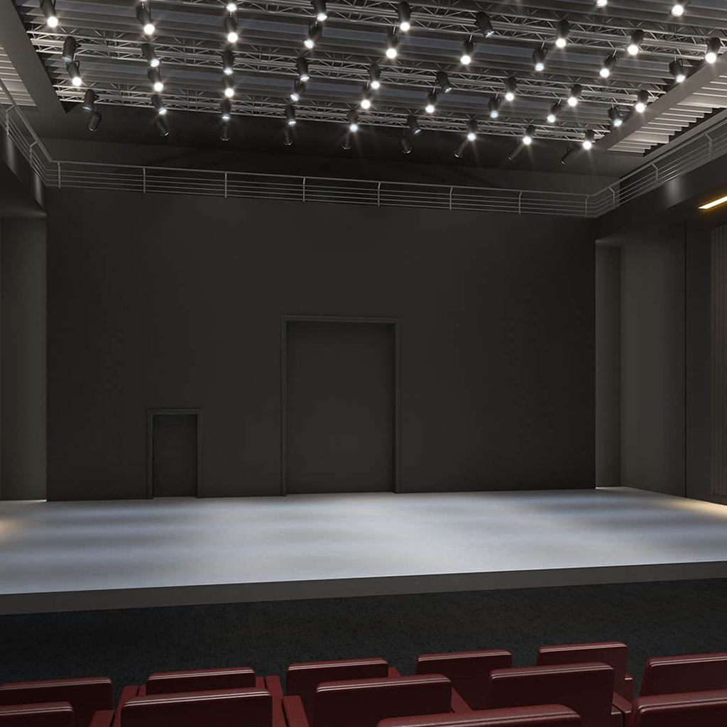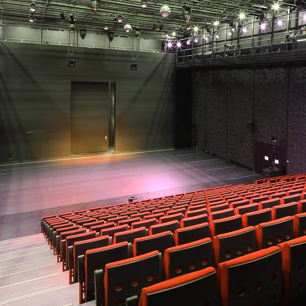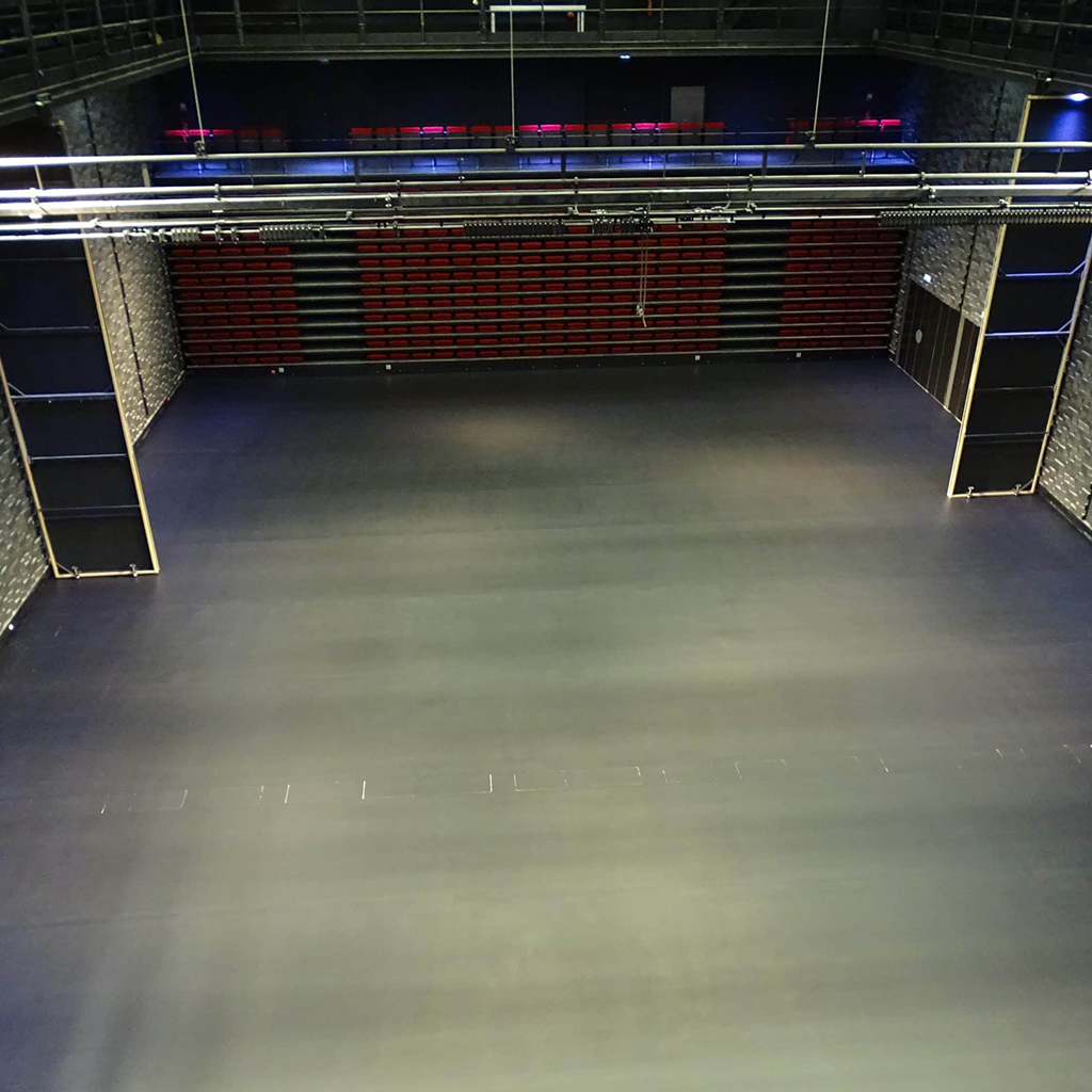Le plancher de scène permanent, qui supporte des charges lourdes, permet les vissages multiples et convient à la pratique de la danse. Il est conforme à la norme EN14904 et permet également l’insertion de trappes, de fosses d’orchestre ou de plateaux coulissants.